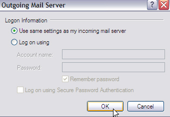 Choose Use same settings as my incoming mail server as shown in figure 5 then choose ok.