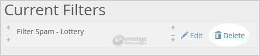 4. Under "Current Filters" You can see all of your existing filters, Click on "Delete" next to the appropriate one.