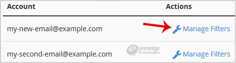 3. Under "Filters by Users" You can see all of your existing email accounts, Click on "Manage Filters" next to the appropriate one.