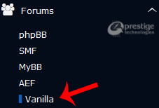 4. On the left side of your screen you should locate the "Forums" category. Click on it and then click on the "Vanilla" link that will appear.