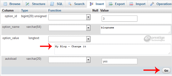7. Edit "My Blog" to different text and then click on "Go" button.