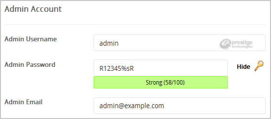 - Admin Username: Your new jCore username (for security reason do not use the "Administrator" or the "Admin" username.)