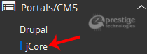 4. On the left side of your screen you should locate the "Portal/CMS" category. Click on it and then click on the "jCore" link that will appear.