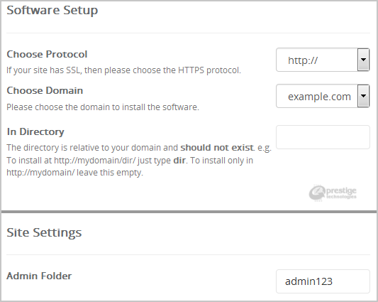 • In Directory: If you want to install this in a directory, for example example.com/directory, enter the directory name. Otherwise, leave this blank to install in your main domain example.com