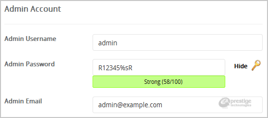 • Admin Username: Your new ProcessWire username (for security reason do not use the "Administrator" or the "Admin" username.)