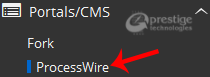 4. On the left side of your screen you should locate the "Portal/CMS" category. Click on it and then click on the "ProcessWire" link that will appear.