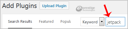 3. In the "Search Plugin" box, enter the name of the plugin you wish to install, such as "Jetpack", and press enter.