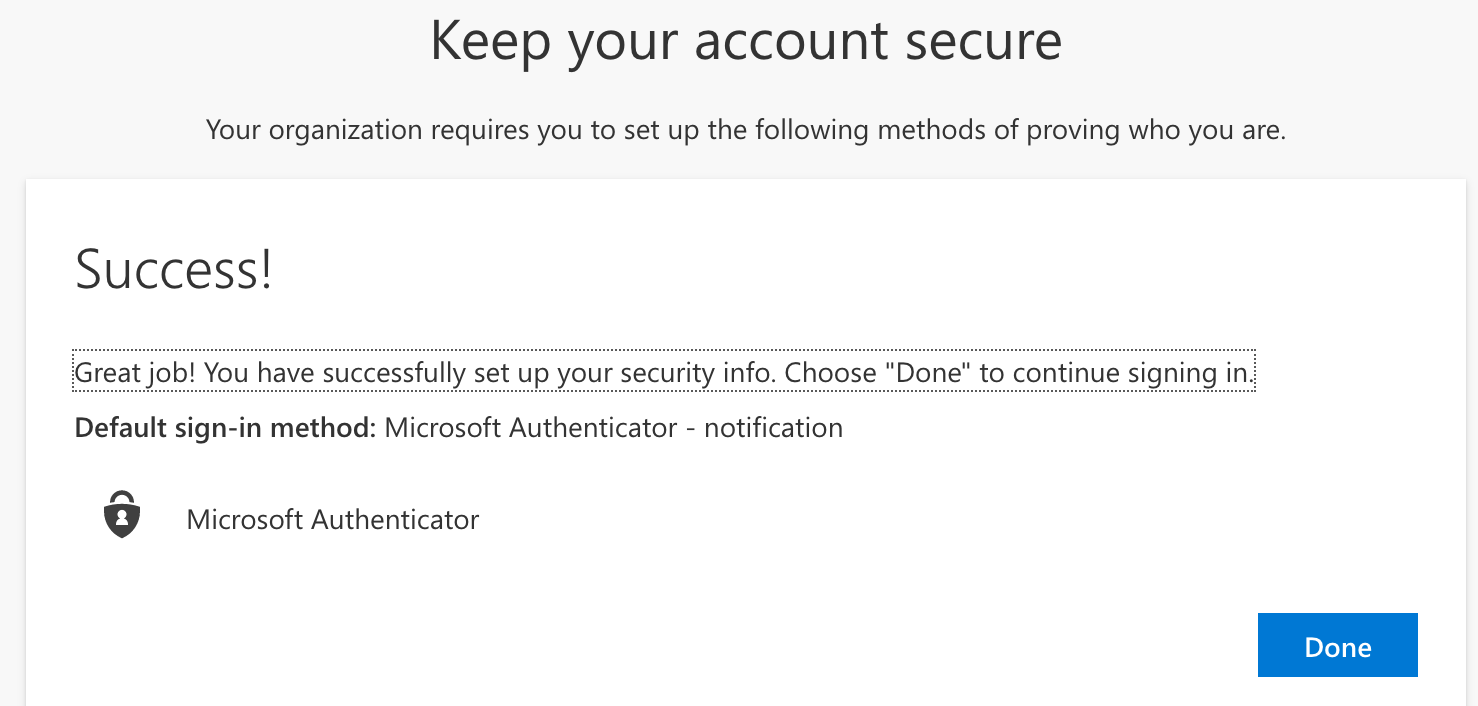 Once you click next you will see a Success! message. Click Done to finish the setup.