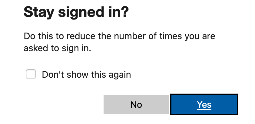 Lastly you will be presented with a message that says, do you want to stay signed in. Basically this will record your device and remember you so you don't have to use the Authenticator each time you login. It will only ask again if you use a new device or new browser or new location. Click Yes if you would like to reduce the number of times you need to sign in or NO if you would like to be asked each time you try to login to Webmail.