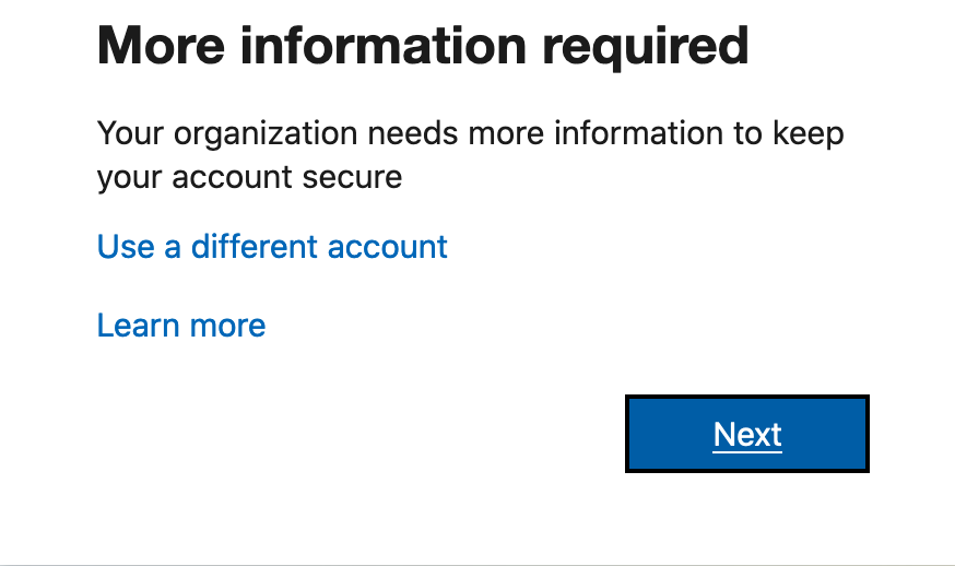 Once you click Sign in you will be presented with a page that says "More Information Required"